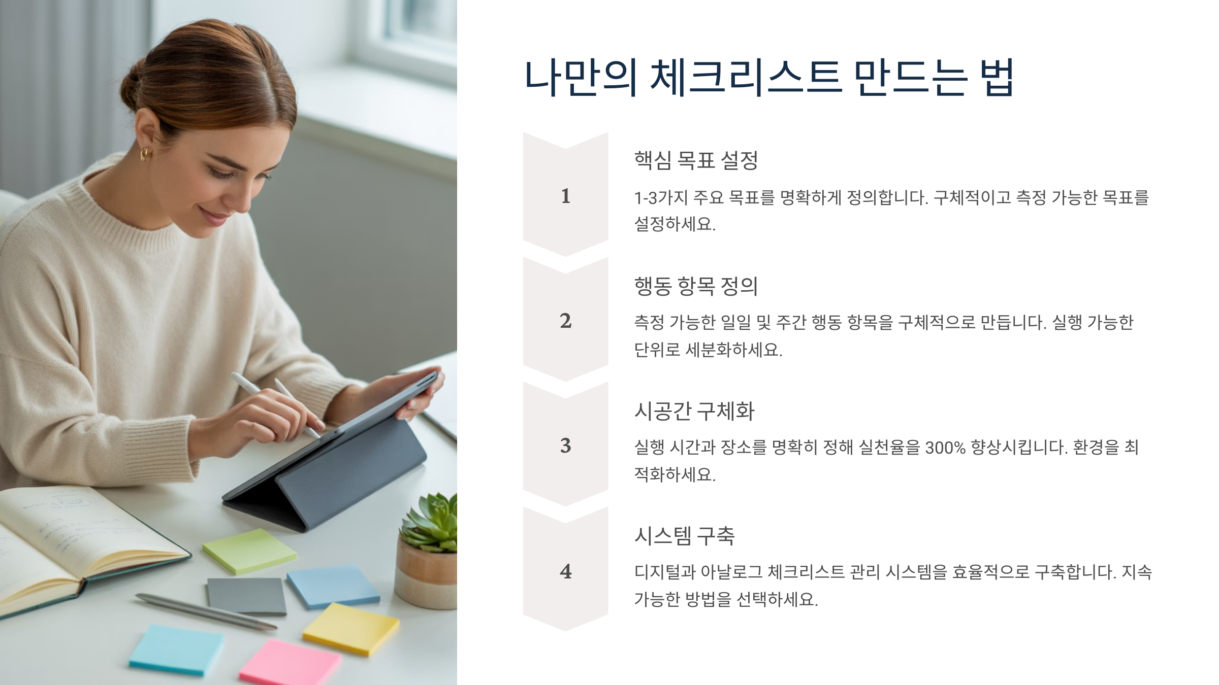 이제 가장 중요한 단계예요! 여러분도 나만의 체크리스트를 직접 만들어야 해요. 다음 3단계로 시작해볼까요?